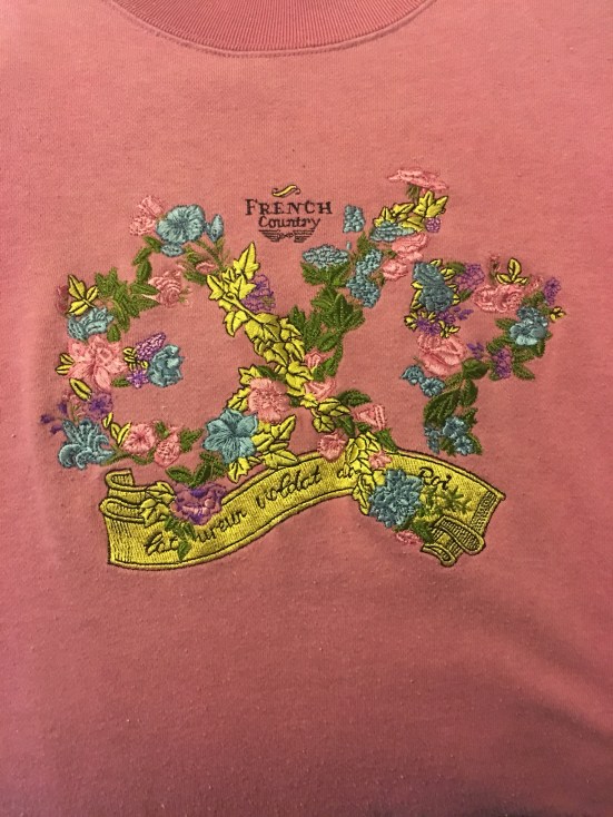 But one particular day, on one particular Christmas shopping trip for mama, we were passing the window of Express, and a mannequin was wearing this mauve sweatshirt. It had EXP on it wrapped in little flowers. He asked me if I liked it, and I said I did, even though I didn’t. He asked me if I wanted it, and I didn’t, but I said I did, because he said if he was me, he would want it.